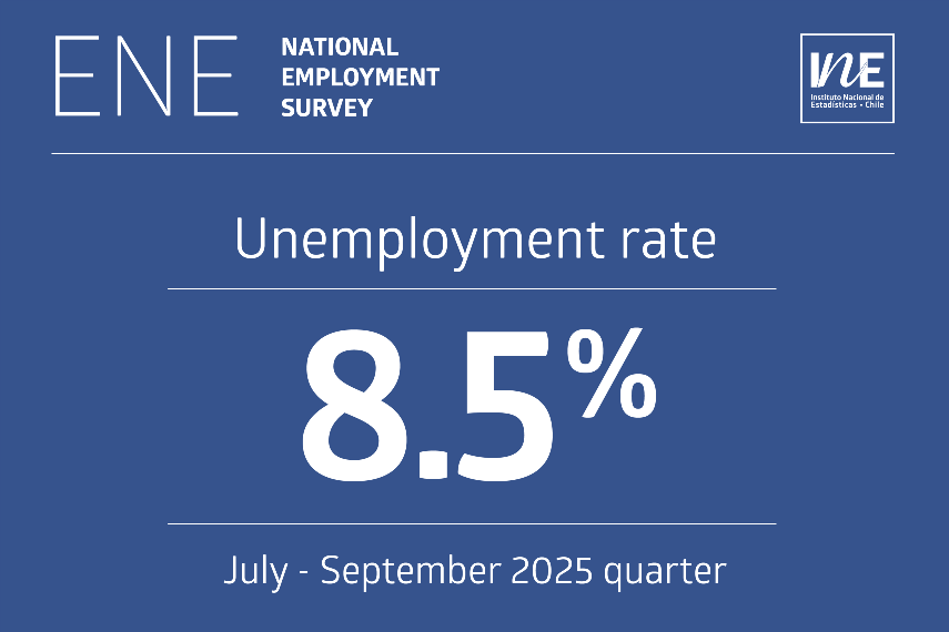 The national unemployment rate was 8.5% in the July–September 2025 quarter (JAS 2025), according to information from the National Employment Survey (ENE), which is produced by the National Statistics Institute (INE).