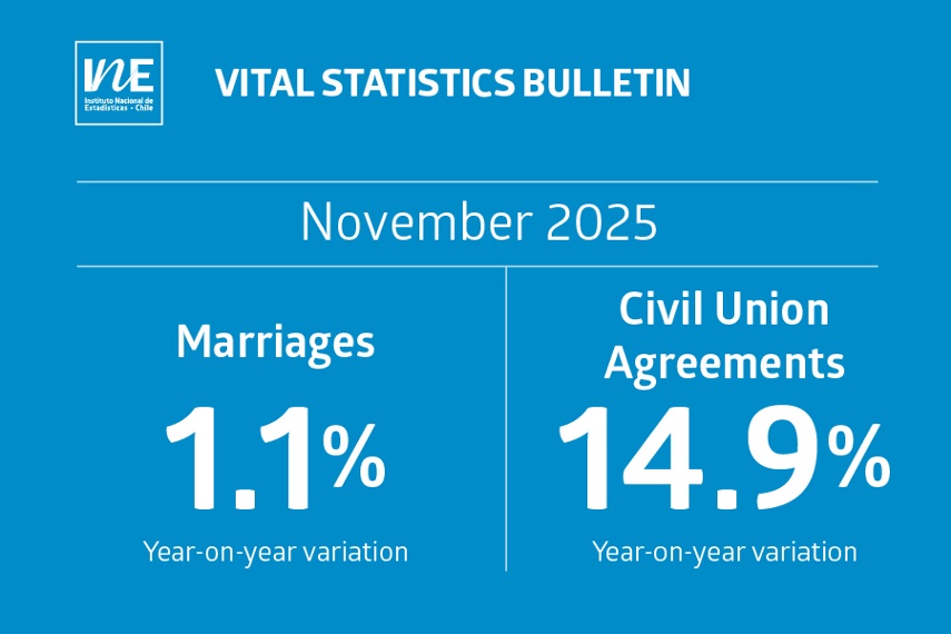 Vital statistics of the period show that there were 6,313 marriages in Chile, an increase of 1.1% compared to November 2024.