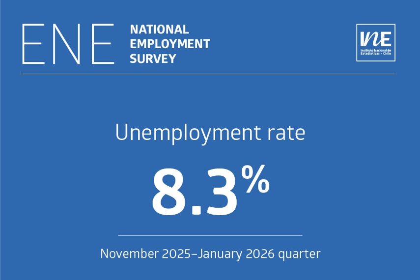 The national unemployment rate was 8.3% in the November 2025–January 2026 quarter (NDJ 2025), according to information from the National Employment Survey (ENE), which is produced by the National Statistics Institute (INE).
