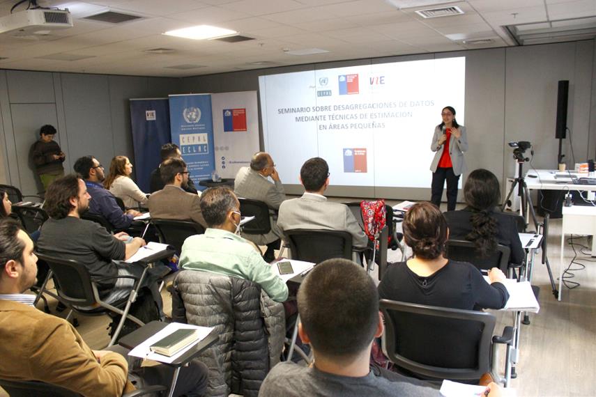 En este contexto, y con el objetivo de difundir las potencialidades de estas metodologías para múltiples actores del gobierno y la academia, la División de Estadísticas de la CEPAL, junto al INE y el Ministerio de Desarrollo Social, realizó esta mañana el seminario “Desagregación de datos mediante técnicas de estimación en áreas pequeñas en Chile”, que contó con la participación del Ministerio de Desarrollo Social y Familia, el Instituto Nacional de Estadística de Chile y la Comisión Económica para América Latina y el Caribe (CEPAL), además de ministerios y otra entidades públicas, del Sistema Estadístico Nacional y la academia de Chile, cuya labor se relaciona con la producción o la utilización de estadísticas para grupos específicos de la población.