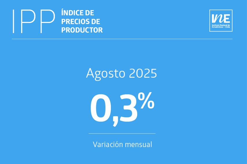 Los resultados completos del Índice de Precios de Productor (IPP) Industrias correspondientes a agosto de 2025 están disponibles en www.ine.gob.cl.
