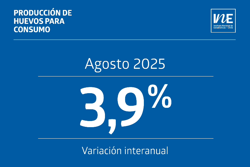 Los resultados completos de la Encuesta de Producción de Huevos (EPH) correspondientes a agosto de 2025 se encuentran disponibles en www.ine.gob.cl, sección Estadísticas Económicas, Subsección Agricultura, agroindustria y pesca, en la pestaña Producción Pecuaria, apartado Producción de Huevos.