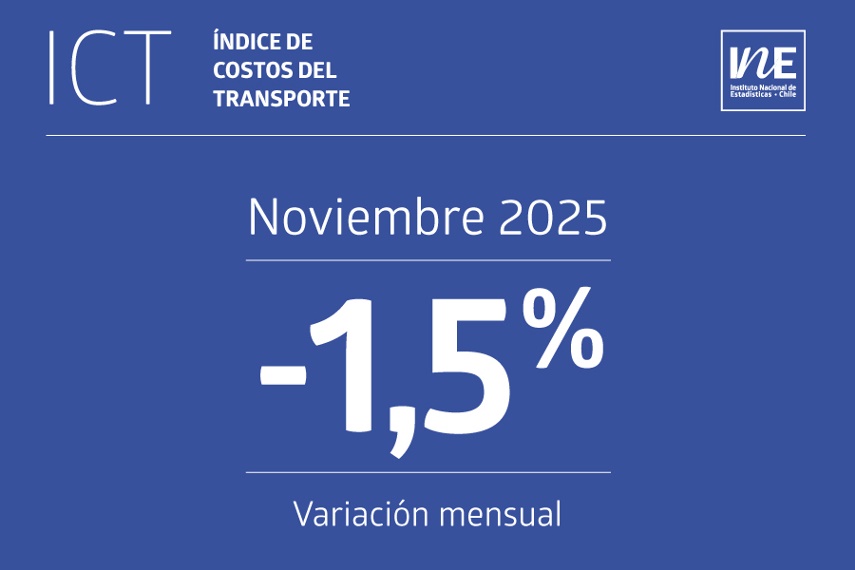 En noviembre de 2025, según informó esta mañana el Instituto Nacional de Estadísticas (INE), el Índice de Costos del Transporte (ICT) presentó una disminución mensual de -1,5%, acumulando 3,0% en lo que va del año.