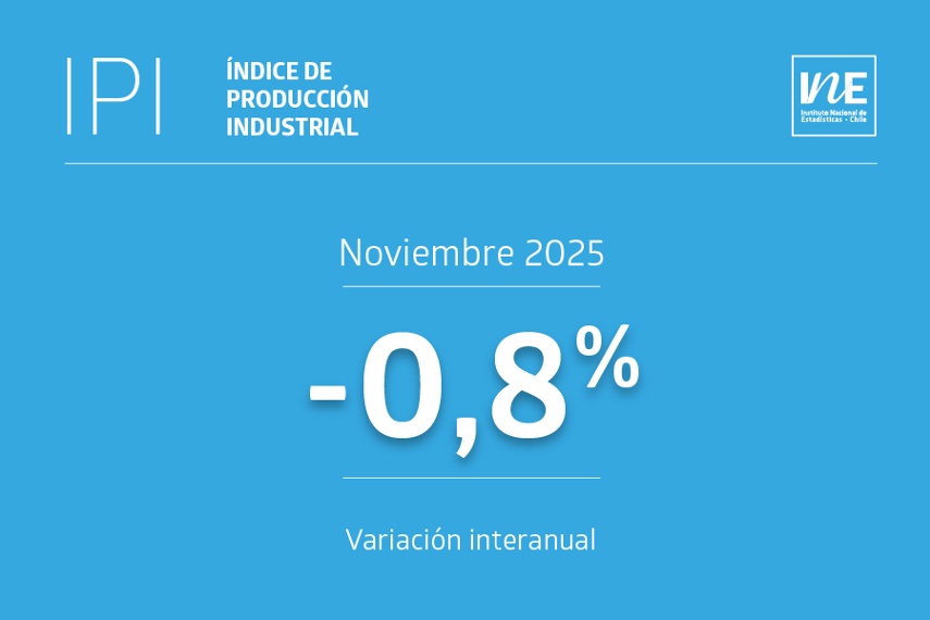 Una variación en doce meses de -0,8% anotó en noviembre de 2025 el Índice de Producción Industrial (IPI), debido a la incidencia negativa de dos de los tres sectores que lo componen, según informó esta mañana el Instituto Nacional de Estadísticas (INE).