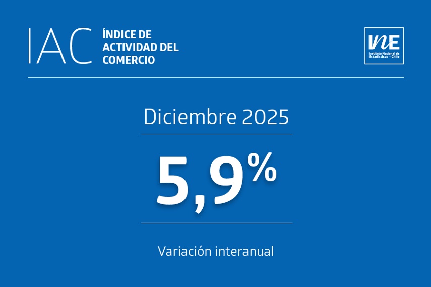 Un aumento interanual de 5,9% anotó en diciembre de 2025 el Índice de Actividad del Comercio (IAC) a precios constantes, acumulando un alza de 5,7% al duodécimo mes del año, incidido por el incremento de las tres divisiones que lo componen, según informó esta mañana el Instituto Nacional de Estadísticas (INE).