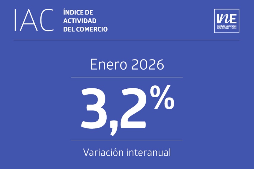 Un aumento interanual de 3,2% anotó en enero de 2026 el Índice de Actividad del Comercio (IAC) a precios constantes, incidido por el incremento de las tres divisiones que lo componen, según informó esta mañana el Instituto Nacional de Estadísticas (INE).