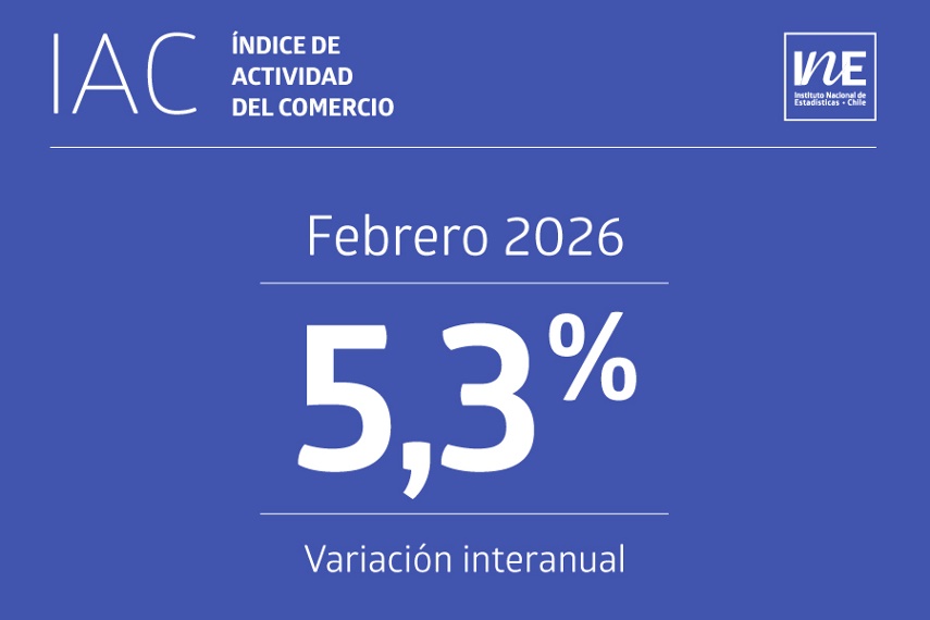 Un aumento interanual de 5,3% anotó en febrero de 2026 el Índice de Actividad del Comercio (IAC) a precios constantes, acumulando un alza de 4,1% al segundo mes del año, incidido por el incremento de las tres divisiones que lo componen, según informó esta mañana el Instituto Nacional de Estadísticas (INE).