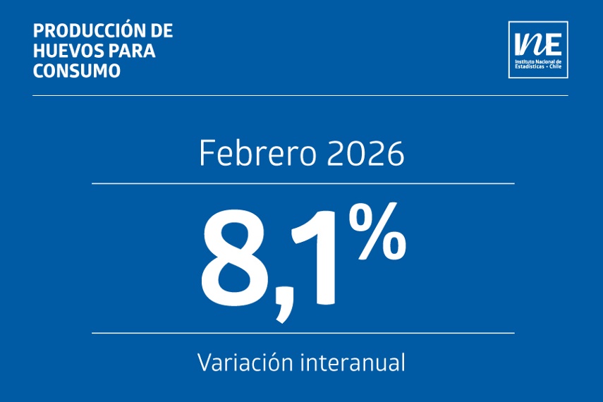 Los resultados completos de la Encuesta de Producción de Huevos (EPH) correspondientes a febrero de 2026 se encuentran disponibles en www.ine.gob.cl, sección Estadísticas Económicas, Subsección Agricultura, agroindustria y pesca, en la pestaña Producción Pecuaria, apartado Producción de Huevos.